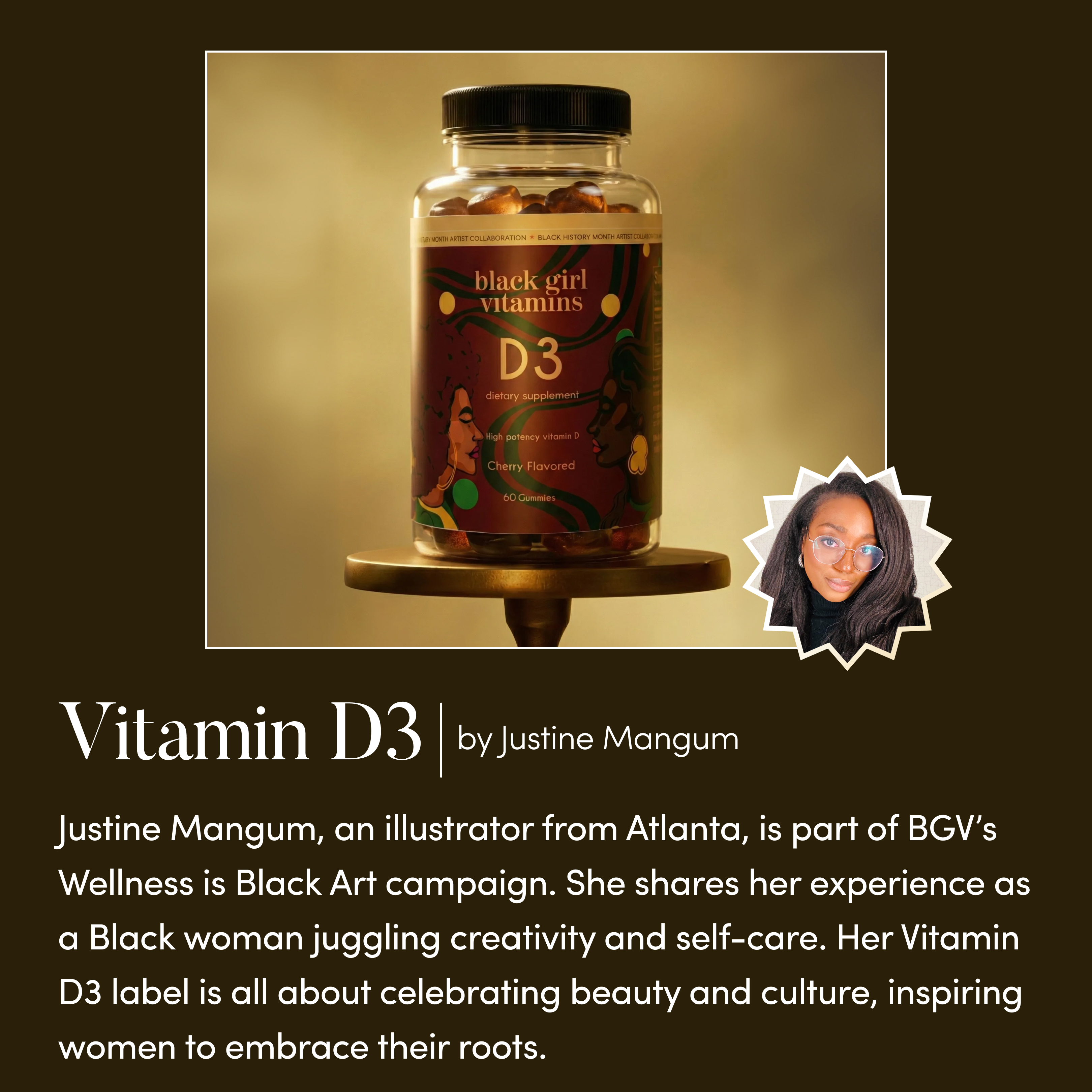 Explore our limited-edition bottles transformed into works of art. Each design reflects the creativity, culture, and healing traditions of Black artists—where wellness meets expression.