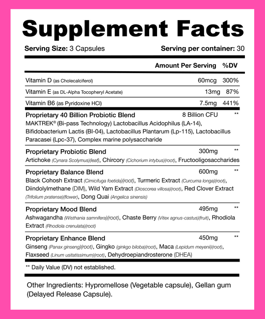 - Proprietary Balance Blend 600mg: Ingredients like Black Cohosh, known for reducing hot flashes and night sweats, and Dong Quai, a traditional herb for hormonal balance. The inclusion of Turmeric Extract adds anti-inflammatory benefits, while DIM (Diindolylmethane) supports estrogen metabolism.